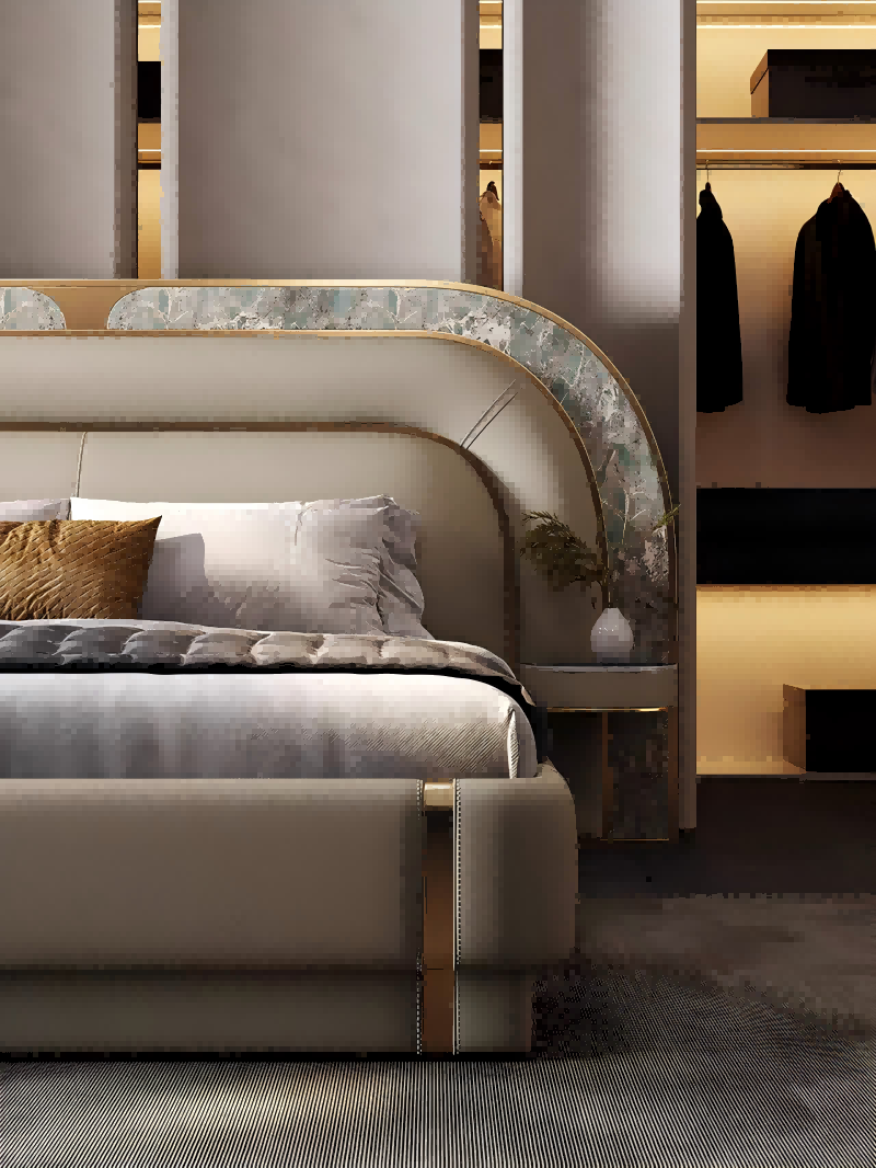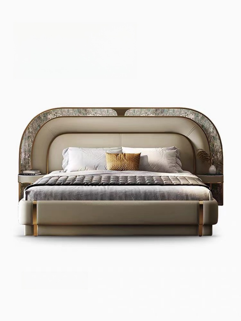 Sélectionné en marbre naturel blanc carrara blanc (3 cm épaissis), chaque tête de lit conserve un motif de paysage unique et la couverture souple de la vache à la couche supérieure importée forme une collision de matériaux froids et chauds. Le marbre a subi 6 processus de cristallisation pour empêcher la pénétration et les rayures.