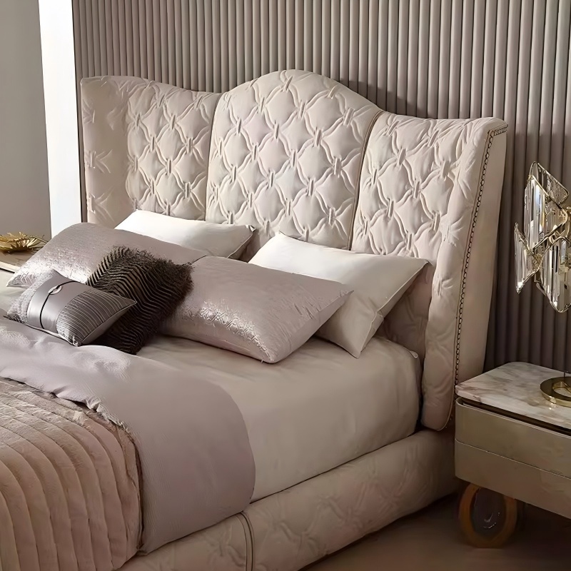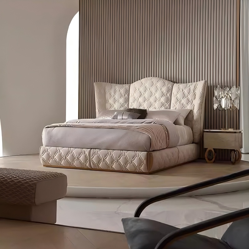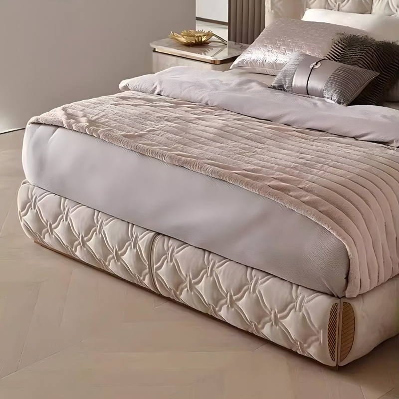 Couvert de velours de haute qualité, il a une touche délicate et adaptée à la peau. Le tissu de velours importé d'Italie est résistant à la poussière et anti-mite. Combiné avec un design ergonomique, il interprète l'esthétique de la chambre discrète et luxueuse.