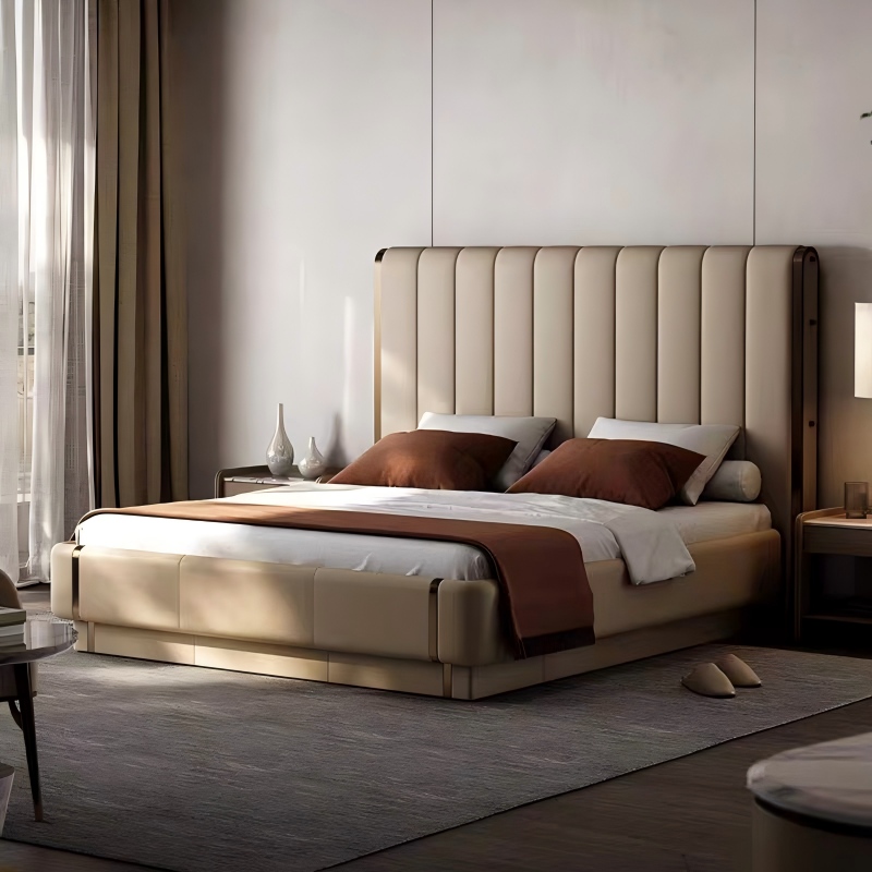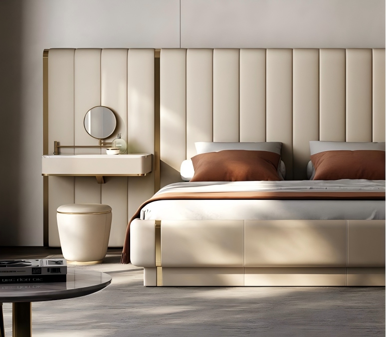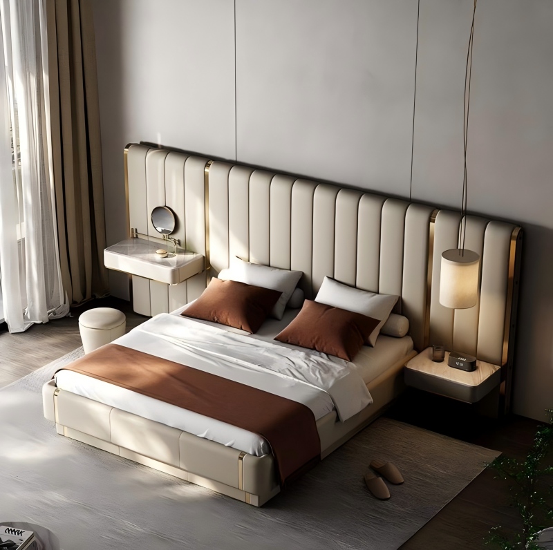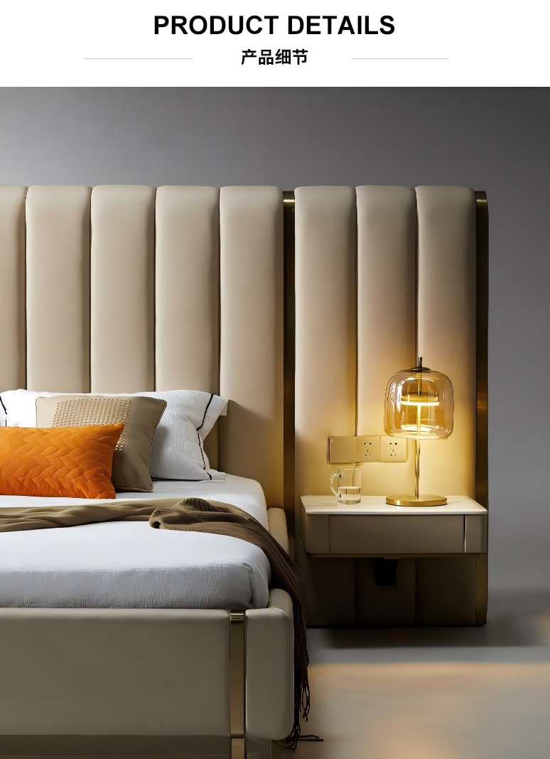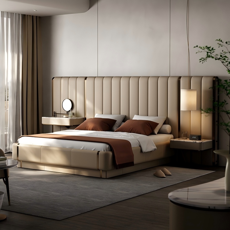 Lu luxe Luxury Master Chambre à trois pièces "Lit en cuir de 1,8 m + tables à double chevet | Counter de la couche supérieure, conception flottante